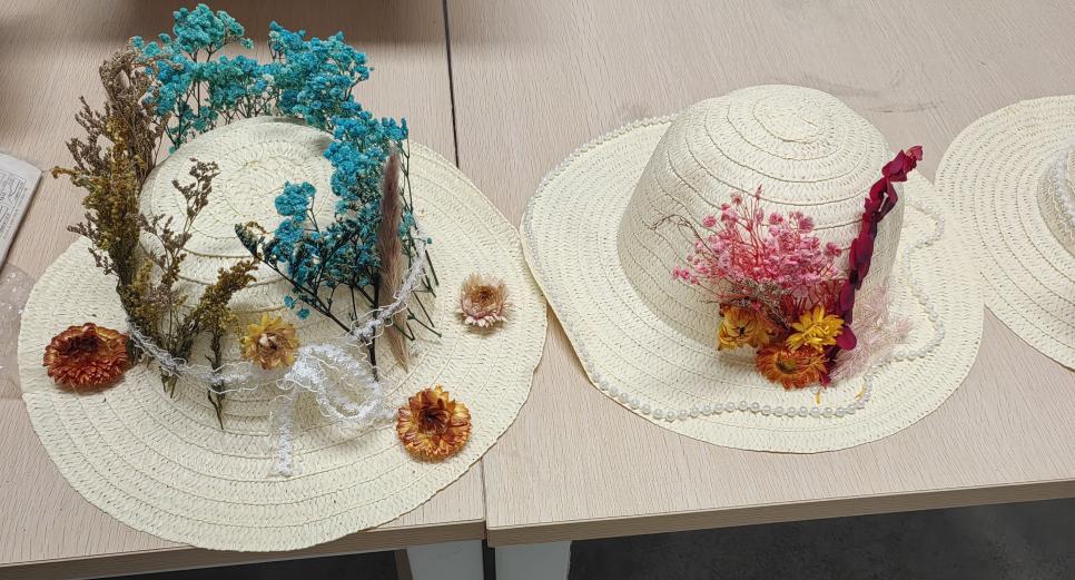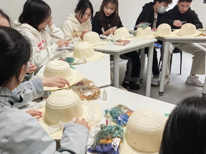 本次活动以“巧手筑梦,花韵帽趣”为主题。下午3时,活动准时拉开帷幕。工作人员首先介绍了花艺礼帽的特点及制作注意事项,并详细讲解了制作流程。同学们认真聆听,积极参与。进入手工制作环节。在工作人员的指导下,同学们领取材料并动手制作,最终都成功完成了自己的花艺礼帽。活动结束后,大家共同清理现场,并合影留念。