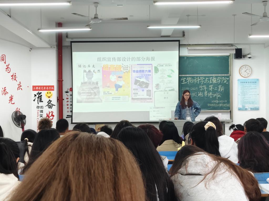 接着,员工会组宣部卜晨曦就班级宣传制作海报、邀请函进行了详细介绍。她分享了海报设计的基本原则,如色彩搭配、布局构图、创意构思等,并展示了一些优秀的海报作品,让班委们对海报制作有了更直观的认识,助力班委们在班级活动筹备中能够制作出精美的宣传物料,提升班级活动的吸引力与影响力。