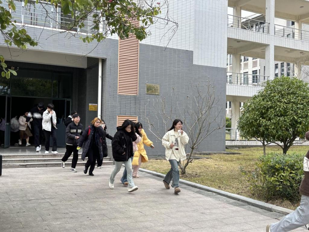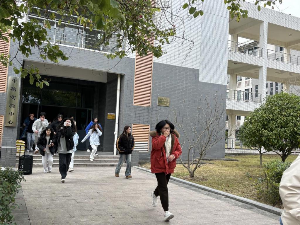 演练正式拉开帷幕。随着应急警报骤然响起,生物实验楼内的员工们迅速反应,按照预定疏散路线有序撤离。在老师的悉心引导下,员工们用手捂住口鼻,低姿前行,快速且有条不紊地向指定安全区域集合。疏散至安全区域后,老师们认真清点人数,确保全体员工均已安全撤离。整个演练过程紧张有序,达到了预期效果。