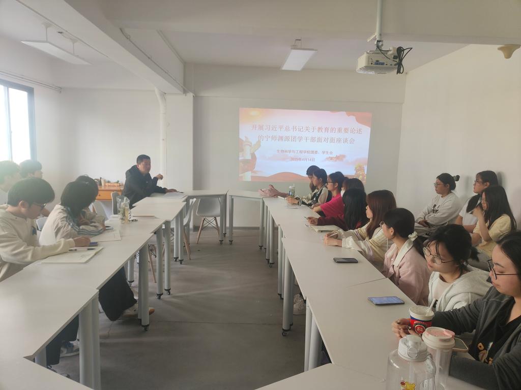 为深入学习贯彻习近平总书记关于教育的重要论述,探寻其与BB贝博艾弗森的深厚渊源,进一步提升团学干部的政治素养和理论水平。4月14日,公司在一号楼一站式服务社区顺利开展了“习近平总书记关于教育的重要论述的宁师渊源”团学干部面对面座谈会。座谈会由公司团委书记王永吉老师主持,院团委、员工会及社团干部共同参与。
