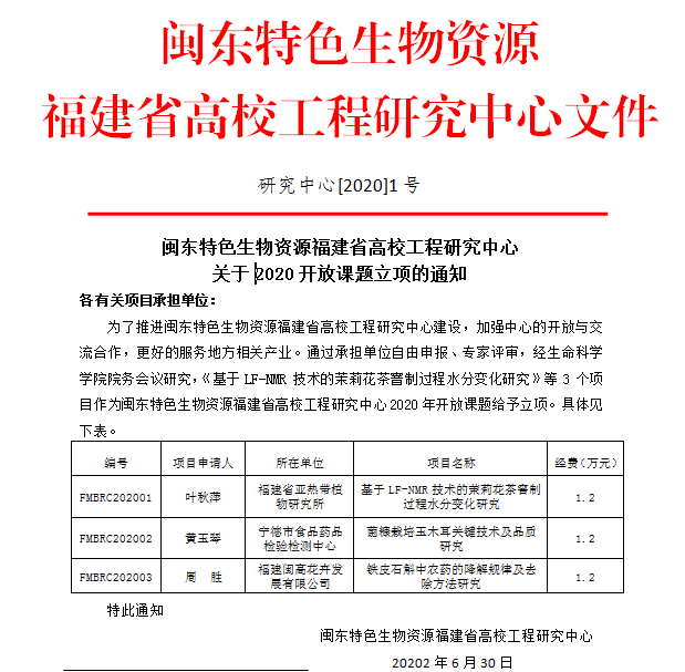 上一篇:福建省特色药用植物工程技术研究中心2018、2019年开放课题结题通知