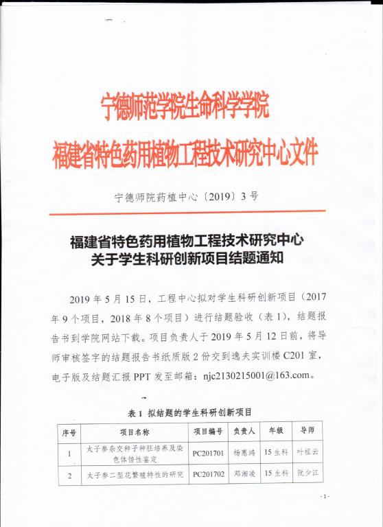 2019年5月15日,工程中心拟对员工科研创新项目(2017年9个项目,2018年8个项目)进行结题验收(表1),结题报告书到公司网站下载。项目负责人于2019年5月12日前,将导师审核签字的结题报告书纸质版2份交到逸夫实训楼C201室,电子版及结题汇报PPT发至邮箱:njc2130215001@163.com。