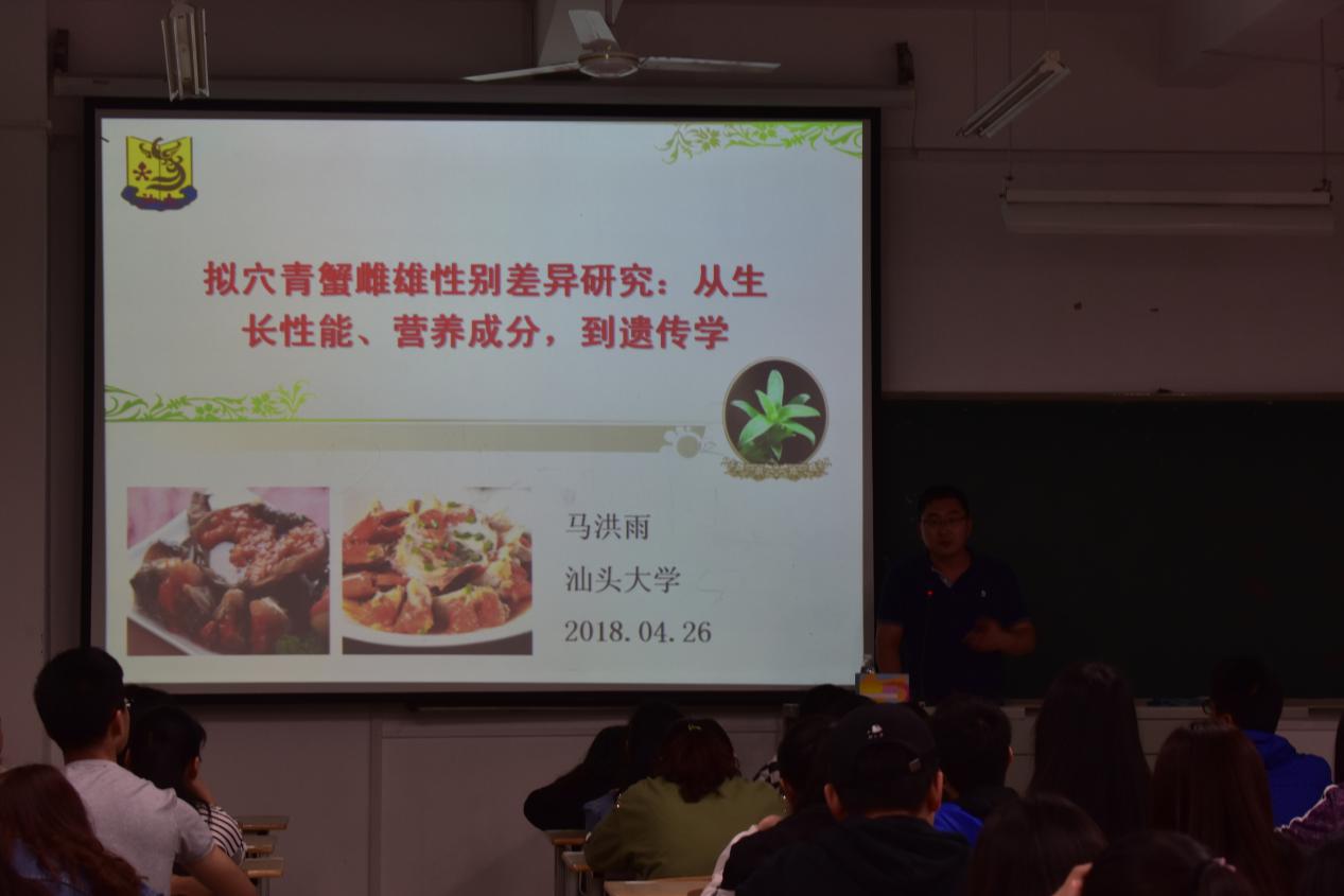 4月26号晚19:00,汕头大学马洪雨教授在求实楼cb203为公司师生开展了《拟穴青蟹雌雄性别差异》专题讲座。