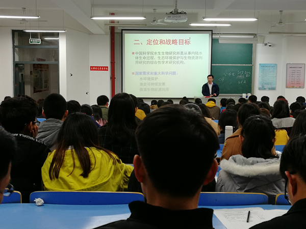 讲座上,李仁辉研究员首先从定位和战略目标、科研队伍、研究生的基本情况等方面介绍了历史悠久,人才辈出的中国科公司水生生物研究所;接着他讲述了蓝藻、蓝藻水华及蓝藻毒素的有关知识,他还提到蓝藻的特征、蓝藻毒素种类及其基本特征、蓝藻水华的去除方法、藻类的检测等,使同学们对蓝藻的认知更加深刻具体。