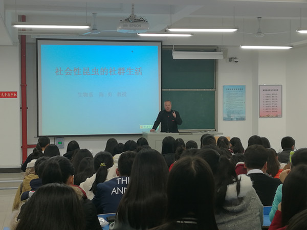 12月16日晚,陈勇教授在求实楼cc201为我系员工开设题为《社会性昆虫的社群生活》的专题讲座。