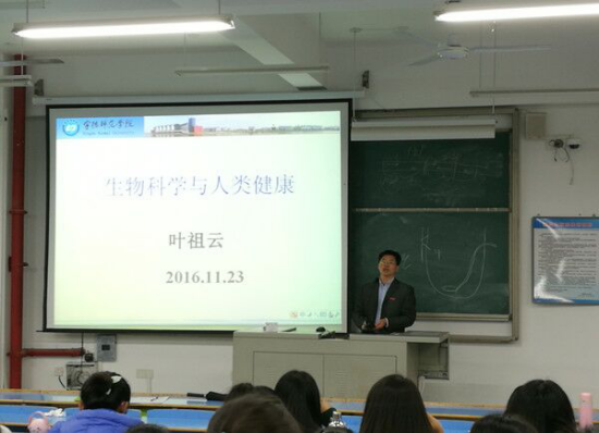 11月23日晚18:30,叶祖云教授在cc201为我系员工开设题为《生物科学与人类健康》的讲座。叶祖云教授以生物科学概念、微生物与人类的联系以及植物与人类的联系这三点主要内容为同学们详细分析了生物科学与人类健康之间的关系。叶祖云教授提到,生物科学是研究生命现象和生命活动规律的科学,如今人类面临的粮食、资源等短缺问题都与生物科学有着密切的关系。在讲座过程中,叶祖云教授还结合实际,从生活实例,数据统计等方式来阐述生物对人类的重要性。通过叶祖云教授的讲座,同学们都深刻认识到学习生物科学对人类发展的重要意义,使同学们对生物科学这门学科有了一个全新的认识。
