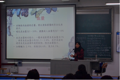 2015年12月15日晚七点,罗芬教授在求实楼CC201开设题为《鱼类与哺乳类血液及循环生理的比较》的知识讲座。血液与循环生理是罗芬教授讲座的两大重点内容。罗芬教授用鱼类与哺乳类作比较,让同学们加深对血液与循环生理知识的了解。在讲座中罗芬教授善于联系生活实际,增加了同学们的兴趣。同学们通过本场讲座,不仅仅学习到了血液与循环生理的相关知识,更学到了一种宝贵的学习方法——比较。相信同学们在以后的学习中运用这一方法,一定会让学习变得更加轻松,更加有乐趣。