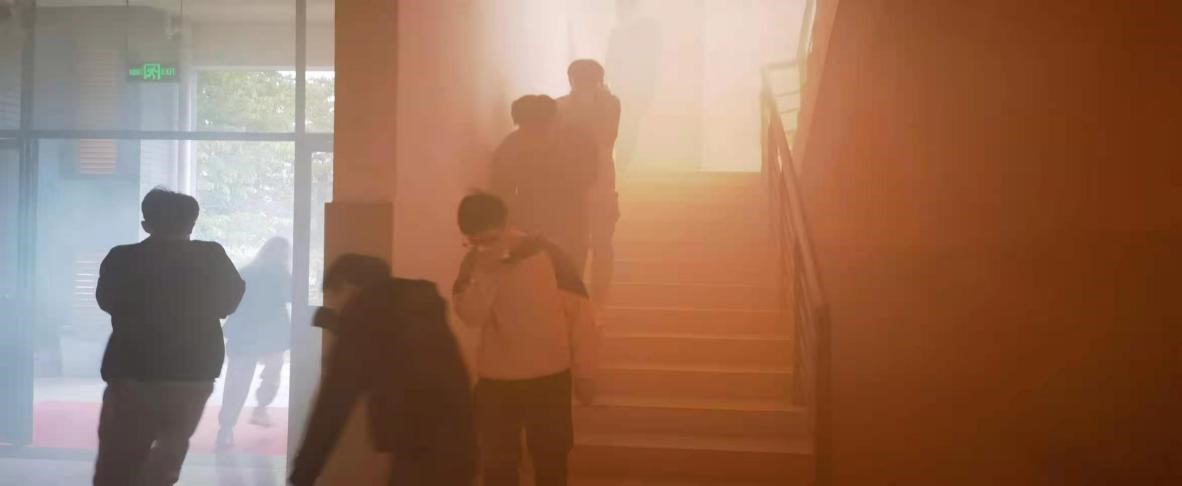 随着警报铃声拉响,生物实验楼内烟雾四起,消防演练拉开序幕,只见员工们都用湿毛巾捂住鼻子和嘴巴,小步弯腰快走,在老师们有序的组织下向操场疏散,全体师生在较短的时间内,安全、有序、镇定、快速地到达疏散集合地(生物实验楼前操场)。在整个疏散过程中做到了师生配合默契、疏散路线清楚、组织有条不紊、人人各尽其责。消防应急演练取得圆满成功。