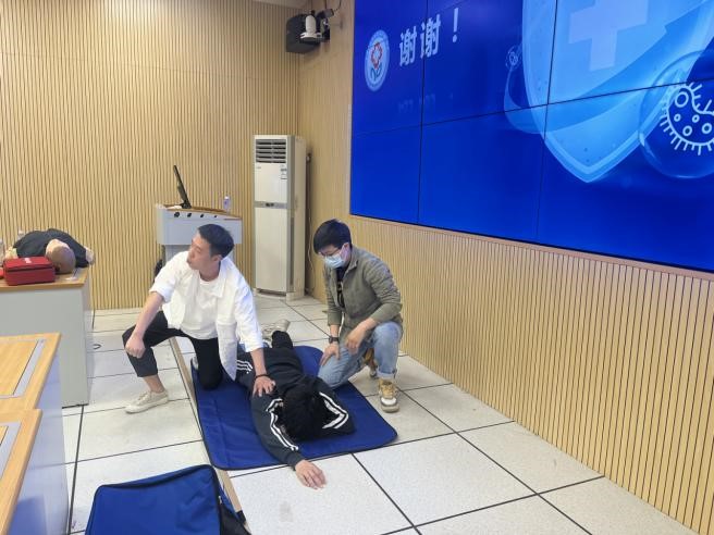 在演练环节中,学员们踊跃参与,医生们对学员们施救步骤及动作要领进行了一对一指导,并及时纠正学员们在实操中的错误,让大家对心肺复苏基本技能每一个急救环节都能进行规范操作。