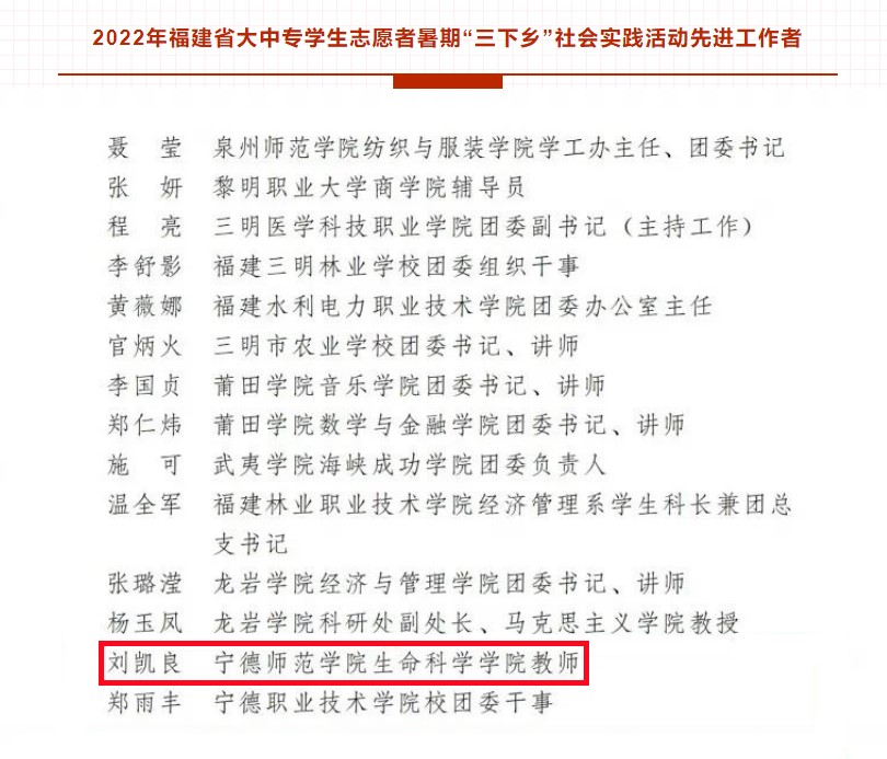 近日,省委宣传部、省委文明办等部门联合印发了《关于2022年福建省大中专员工志愿者暑期“三下乡”社会实践活动优秀集体和个人的通报》,公司教师刘凯良喜获2022年福建省大中专员工志愿者暑期“三下乡”社会实践活动先进工作者!