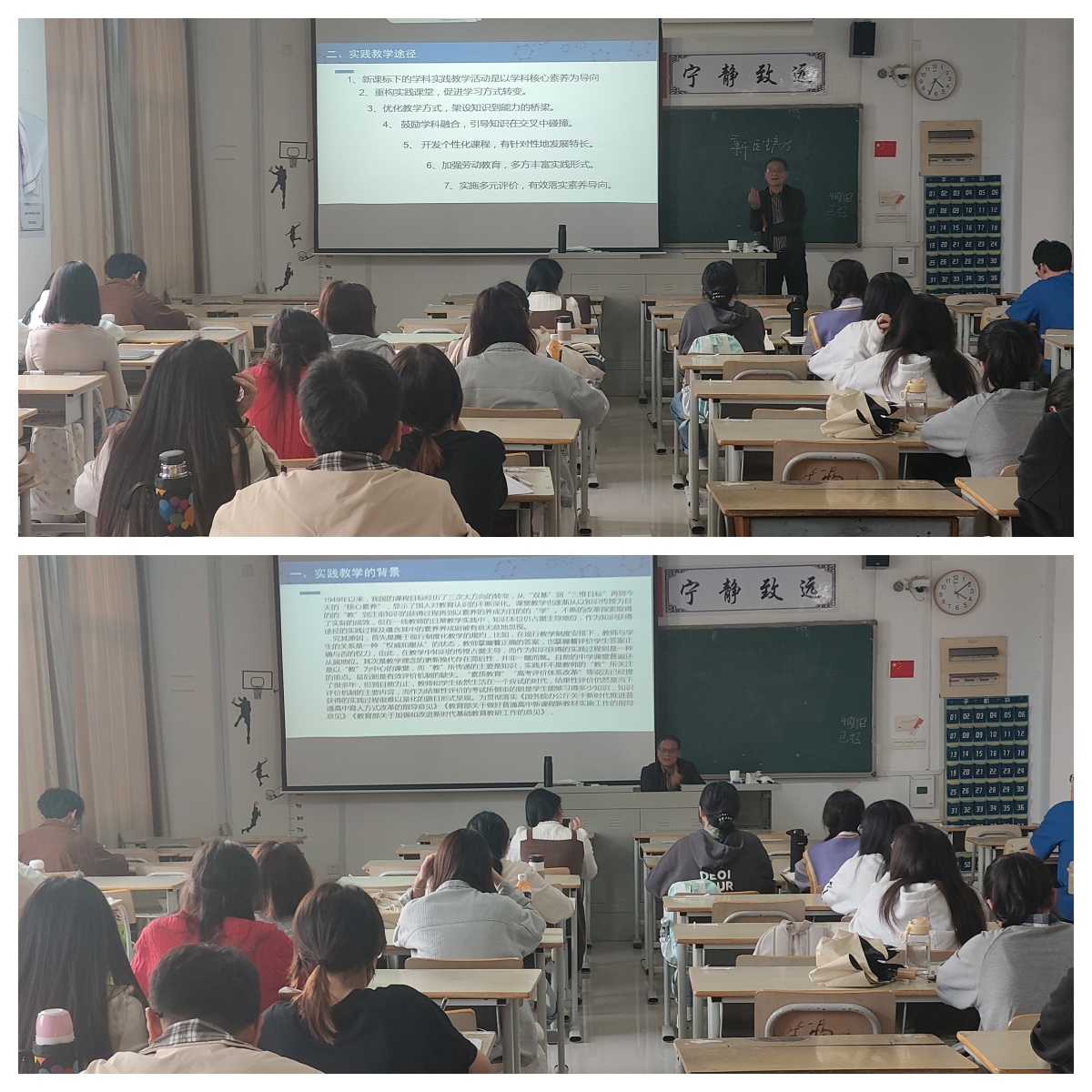 在讲座中,郜寿潭老师从实践教学的背景、途径和策略等多个维度,为同学们带来了深入浅出的讲解。他结合自己多年的教育工作经验,通过生动的案例,让同学们更加直观地了解了生物学实践教学的具体方法和技巧。