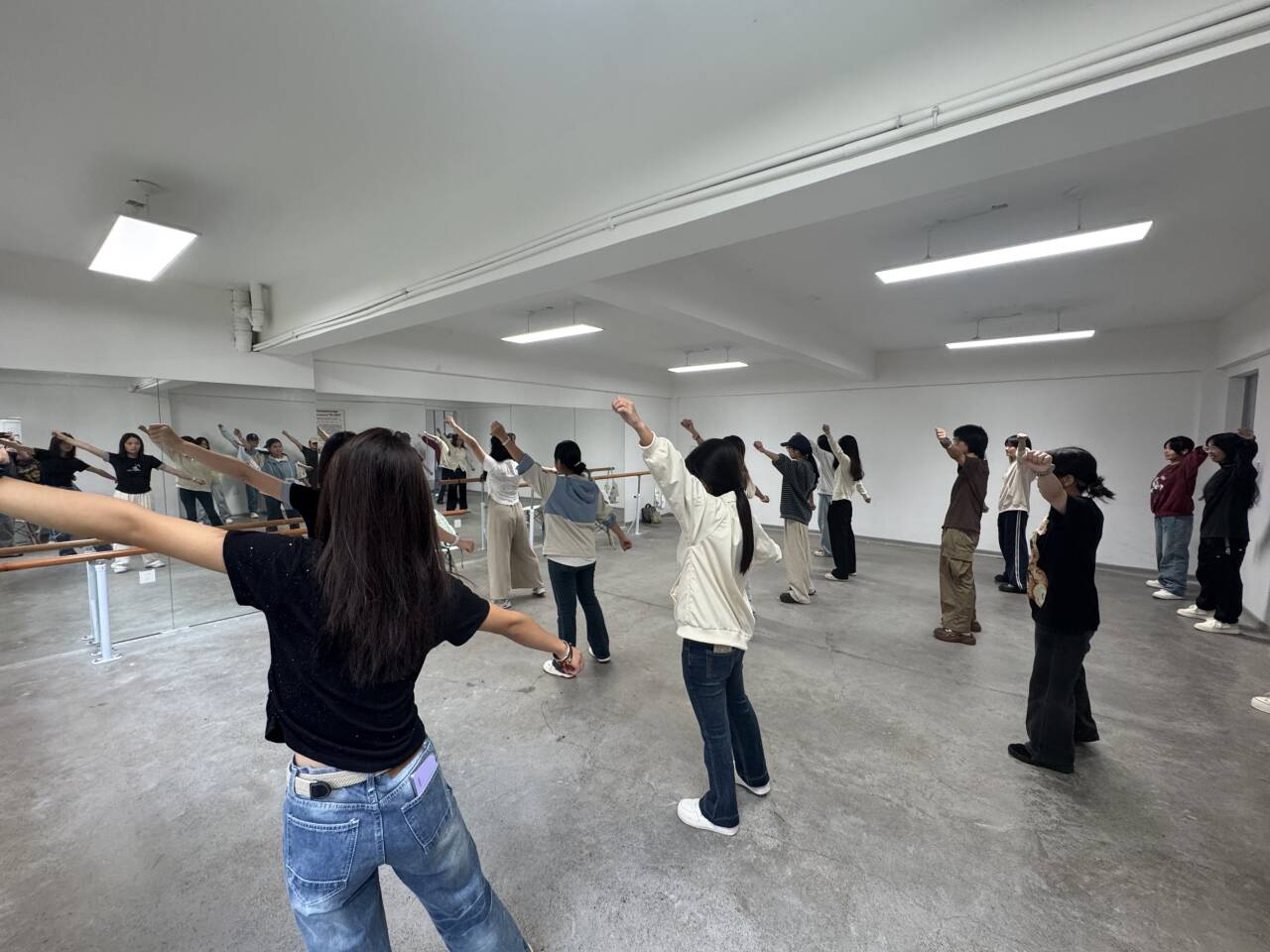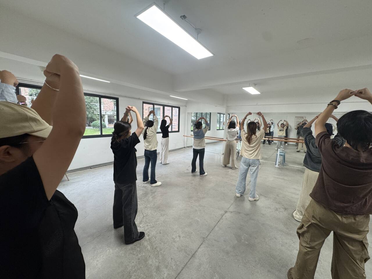 活动现场,吴敬丹围绕基础动作与成套编排展开教学。从手位、脚位等基础元素细致讲解,到将元素巧妙融合成富有节奏感的成套动作,学员们全情投入。他们利用镜面墙不断调整姿态,小组练习时相互交流、彼此鼓励,学习氛围热烈浓厚。