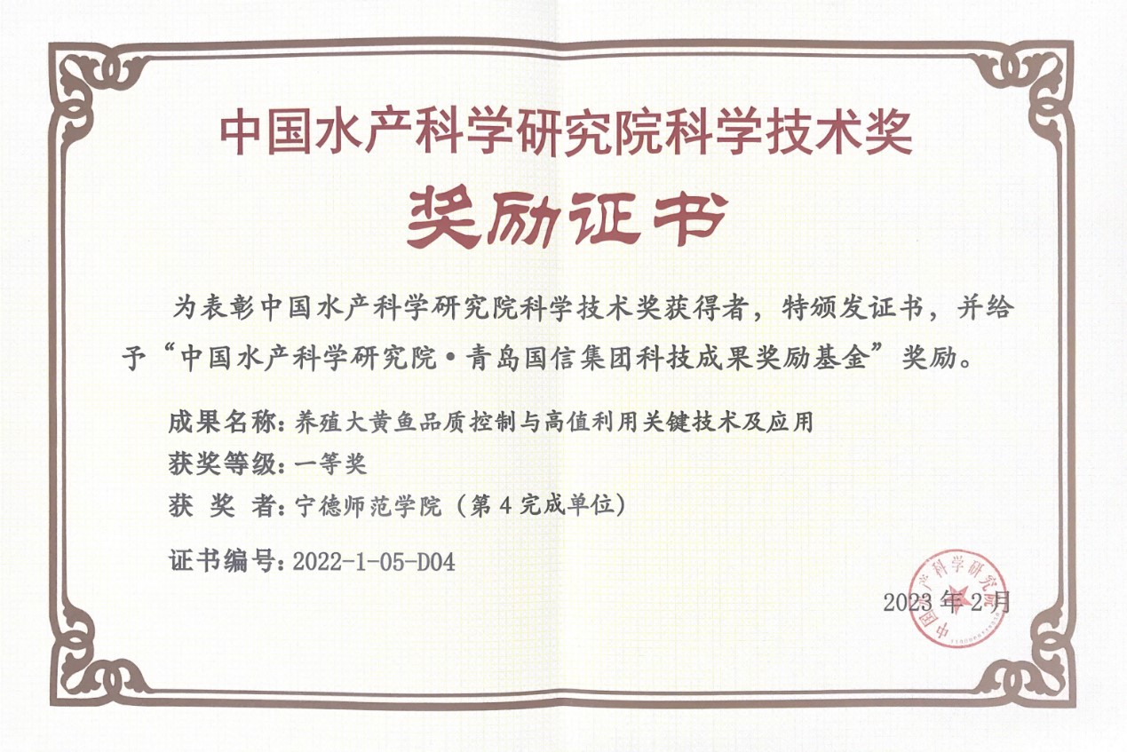 2023年2月14日,中国水产科学研究院公布了2022年度科学技术奖获奖项目,其中由BB贝博艾弗森特聘教授海洋渔业振兴公司副经理郭全友研究员主持完成的《养殖大黄鱼品质控制与高值利用关键技术及应用》项目荣获中国水产科学研究院科学技术一等奖。本成果针对大黄鱼原料品质差异大、冷链贮销衔接差、高值利用率低等关键问题,围绕大黄鱼“质量分级→冷链贮运→高值利用”的研发路径,开展其原料品质和致腐机制等基础研究,冷链物流与鲜度预测、靶向控菌和高效发酵、副产物生物提取与综合利用等技术装备研发及集成,制定原料鱼质量等级和高值化利用等标准体系,研制预制菜和香糟鱼等新品,该成果已被福建与浙江地区的多家企业应用,取得了显著的经济、生态和社会效益。
