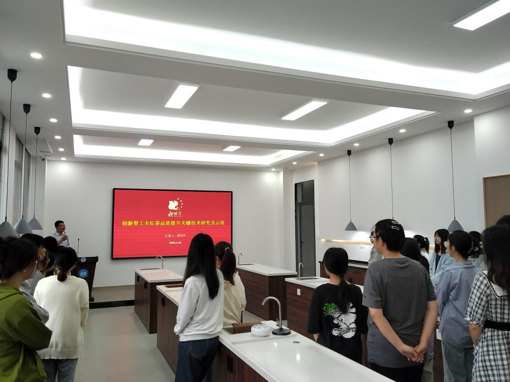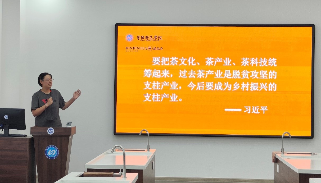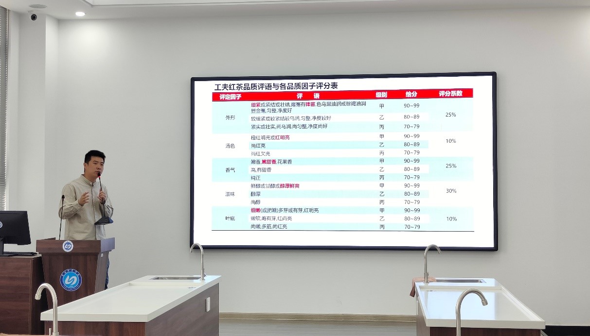 课上,郑世仲重点讲述创新型工夫红茶品质提升的相关关键技术,图文并茂地讲解了创新型工夫红茶加工的创新点和具体的机理,讲述了坦洋功夫红茶的历史和创新型工夫红茶的发展现状,同时分享了自己的科研和科技特派员工作的一些体会,让同学们对闽东茶产业的发展有了更进一步的认识。接着,由品品香班的同学们针对“品品香茶产业开班仪式”的见习,交流感想和体会。最后,班主任周子维从理论与实践两方面开展了传统型红茶和创新工艺红茶的感官审评活动,同学们在氤氲的茶香里对福建工夫红茶有了更为深入和全面的认识。