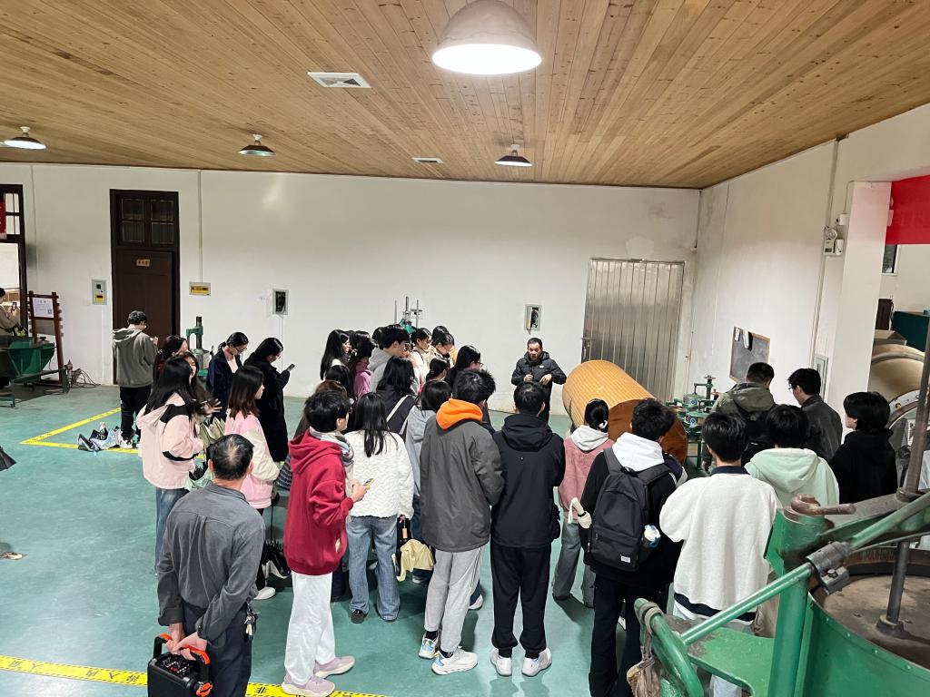 在福建品品香茶业有限公司,在行政部杜家品经理的带领下,师生们先后参观学习了白茶精制生产线、全自动包装生产线以及烘青绿茶初制生产线。在白茶精制生产线,浓郁的茶香伴随着流水线机械运转的轰鸣声,寿眉毛茶经过筛分、色选、风选和静电除杂后完成了华丽的转变;品品香茶业自主研发的自动化包装生产线,具有人力少、运力强、运量大的优势,达到了国内领先水平;而在不久前投产的烘青绿茶初制生产线上,同学们认真听取了储青、热风杀青、揉捻、解块、烘干、传输等设备的介绍,仔细辨别和记录机械铭牌,深刻感受到一体化、智能化、标准化、规模化的烘青茶坯生产线的魅力。在福安社口坦洋茶场,在茶场党支部书记林建华的带领下,参观了萎凋、揉捻、发酵、烘干等初制车间,现场了解了百年红茶坦洋工夫的历史,感受到了坦洋工夫在传承与创新中焕发的新活力。在福安甘棠镇厝坪村,作为全国最大的茶苗无性系繁殖基地,在省茶科所王振康研究员的指导下,师生们听取了茶树无性繁殖的历史演变、无性系品种推广对茶产业发展的重要性,以及近年来省茶科所在优良品种选育方面取得的新进展。同学们还在技术人员的指导下进行了剪穗和扦插等实操,进一步巩固了课堂上的专业知识。