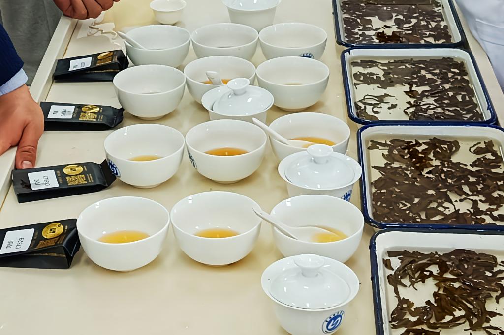 活动现场,师生们严格遵循《茶叶感官审评方法》(GB/T23776-2018 ),对主办方选送的 20 支肉桂茶样进行系统审评分析。通过干茶外形观察、开汤审评、叶底分析等环节,全面解析肉桂茶色、香、味、形等特征。特别是对 "岩韵" 的品鉴中,师生们从茶树的品种特征、香气的馥郁程度、茶汤的醇厚感、齿颊留香的持久度等维度展开细致交流和讨论,结合专业知识,进行科学分析,充分展现了理论与实践相结合的教学特色。