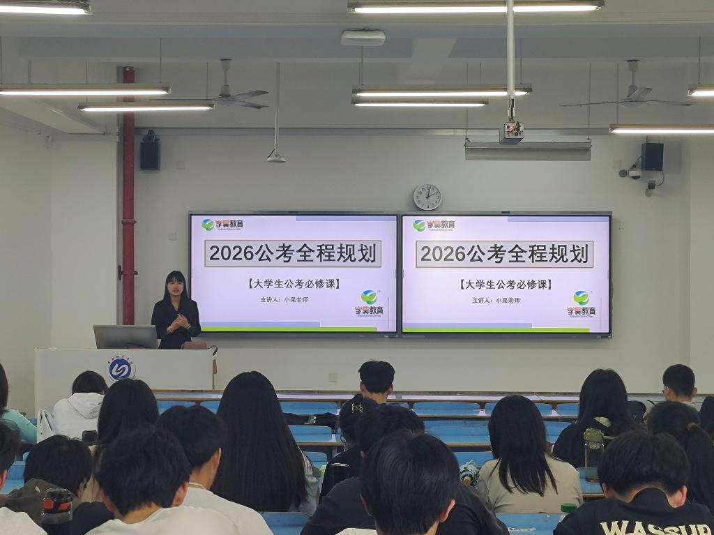 在核心内容环节,小果老师围绕 “笔试备考方法论” 展开深度分享,从行测 “模块突破法” 到申论 “结构化写作”,结合历年真题拆解高频考点,强调 “精准刷题”“错题复盘” 与 “时政积累” 的重要性。针对员工关心的岗位选择问题,她以海关、税务、基层选调等热门岗位为例,对比分析薪资待遇、工作环境及职业成长空间,建议同学们结合个人专业优势与职业理想理性报考。此外,她特别提醒备考员工注意应届生身份的宝贵价值,鼓励大家提前规划,充分利用在校时间完成备考冲刺。
